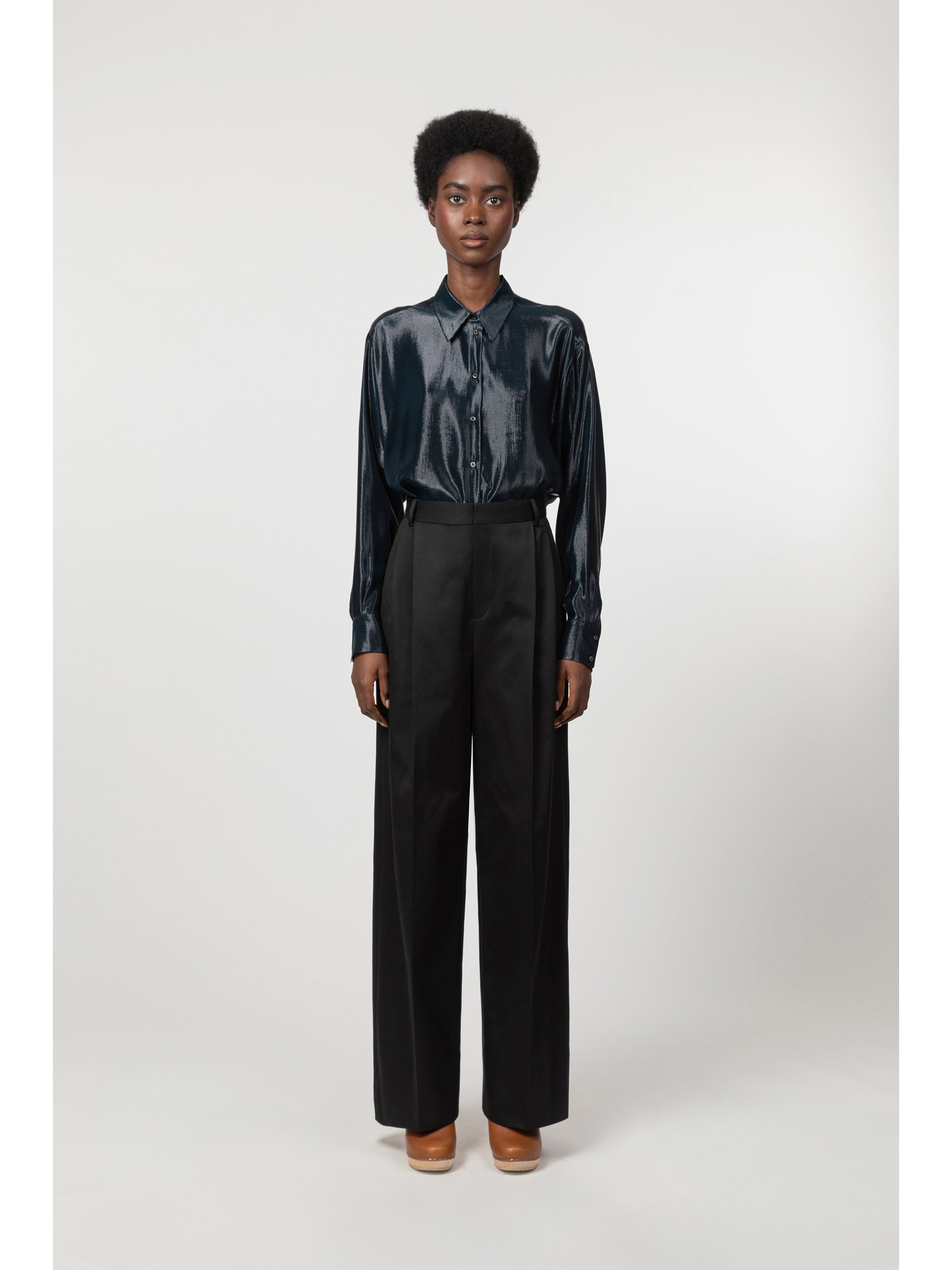 Pantalon à plis en twill de coton