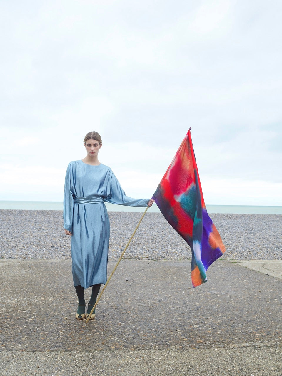 King: Velvet Goldmine _ Corduroy pants / Mars _ Wool and cashmere coat / Queen: Modern Love _ Crepe silk dress / Genie _ Anemone flower