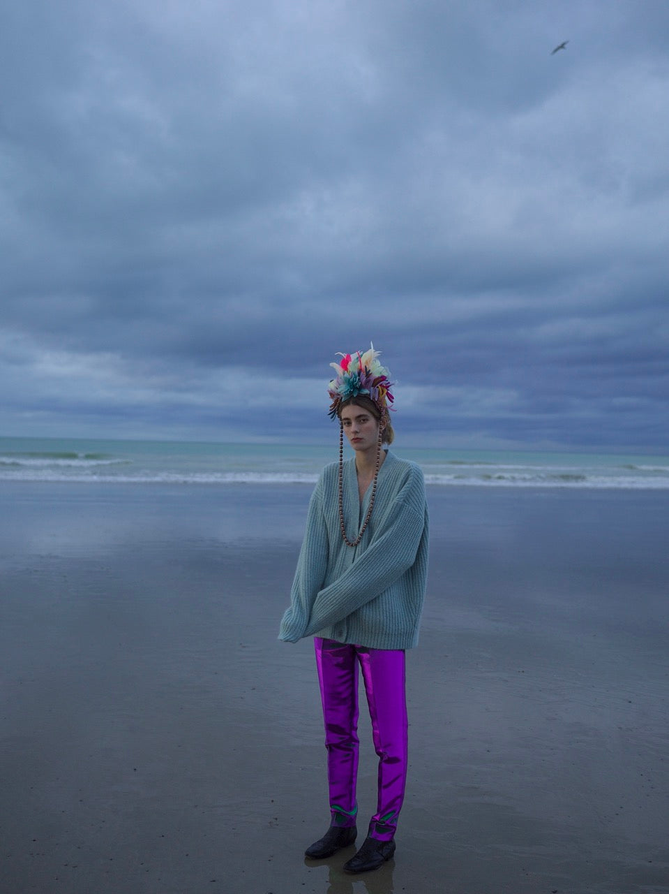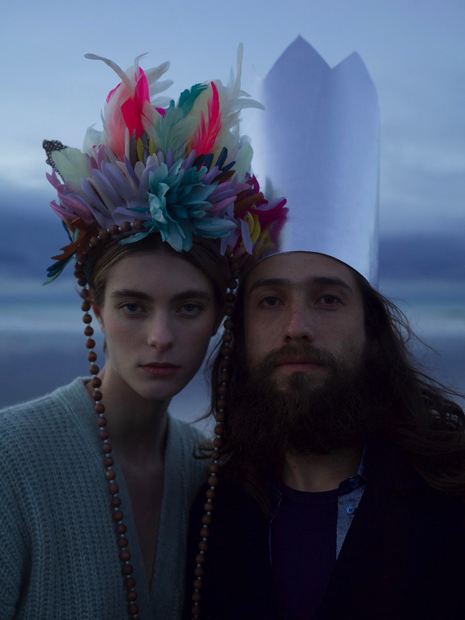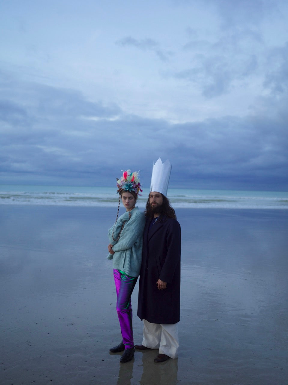 Queen: Ni te Flights _ Alpaca and cashmere cardigan / King: Drive-in Saturday _ Oversized t-shirt / Ziggy _ Lurex voile shirt / Mars _ Wool and cashmere coat