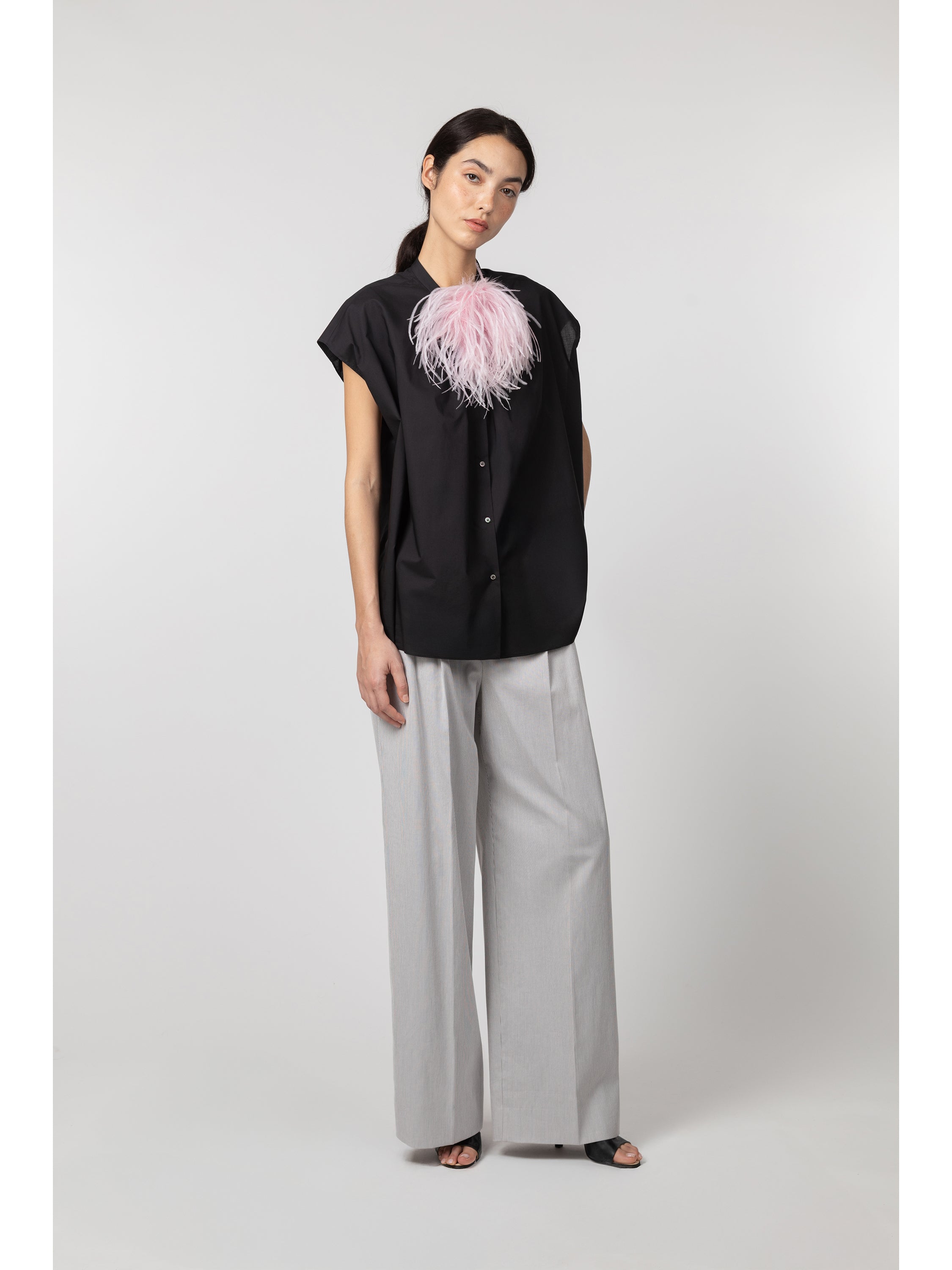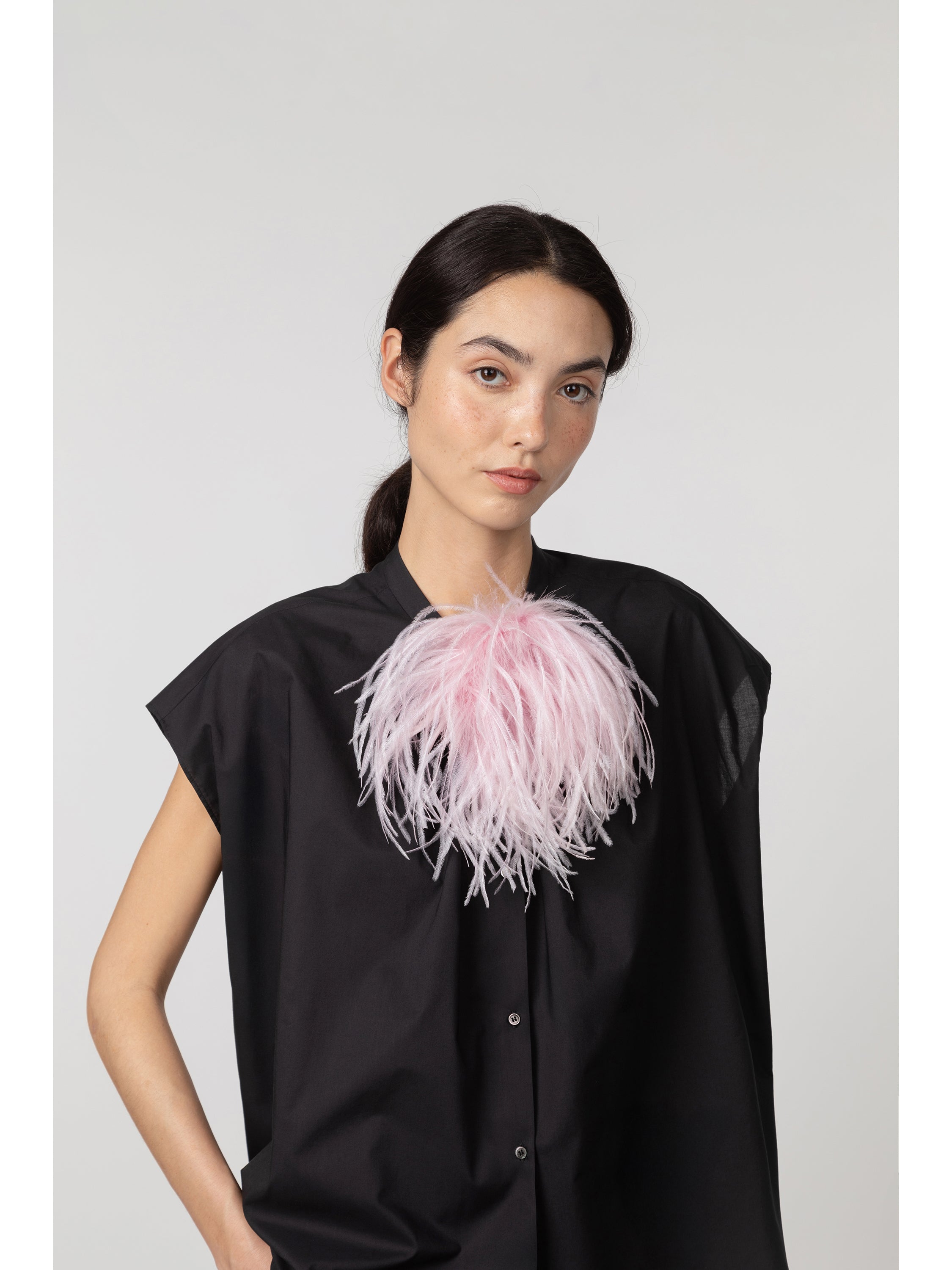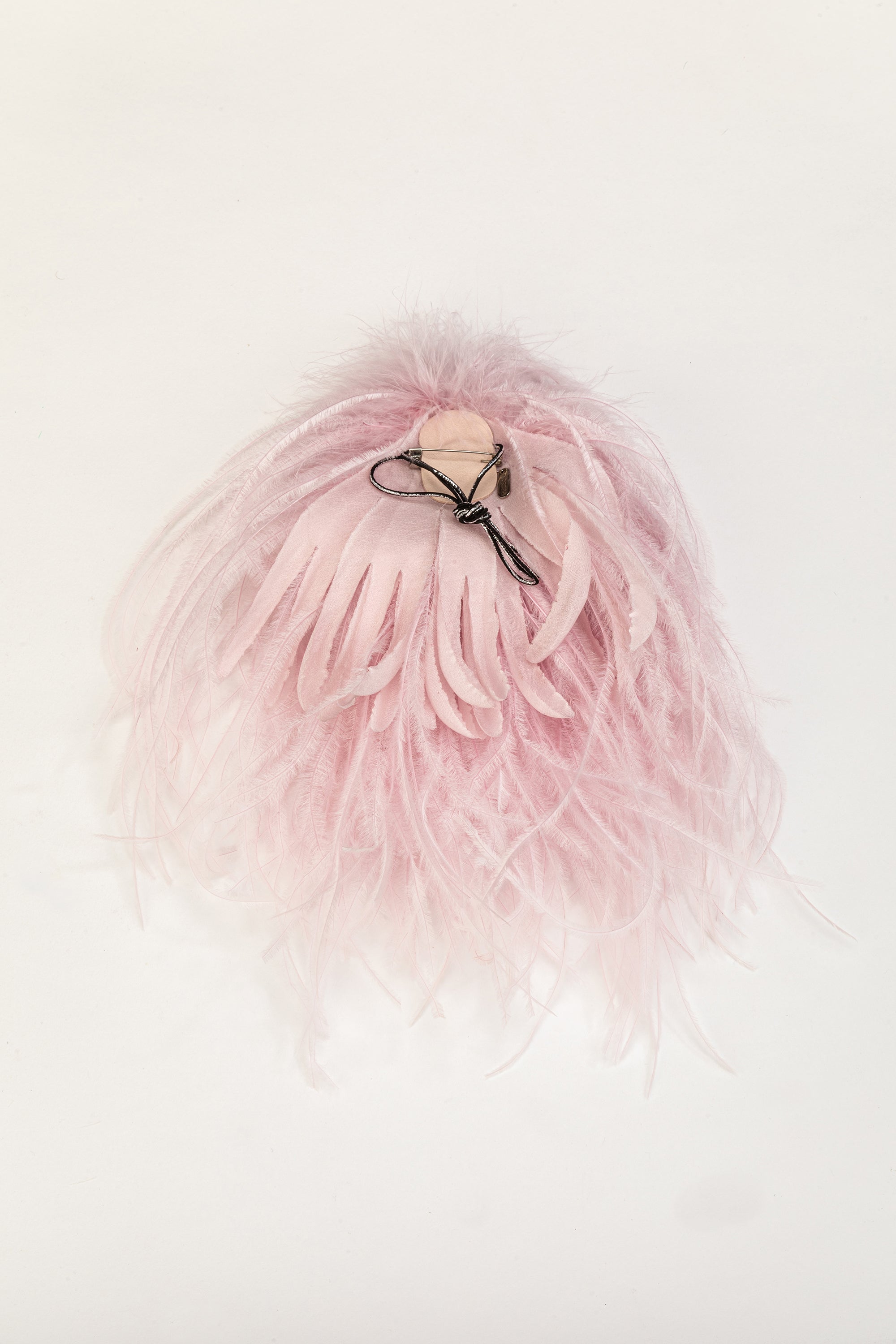 Manufactured in the north of Paris by one of the last feather masters in France, this brooch is made from lush ostrich feathers dyed in exclusive colors developed by the INDRESS studio and drawn from our collections. It is adorned with three hand-embossed upcycled silk petals and finished with lambskin leather. Details include a silver clasp and an elastic band to place the brooch on a garment, in your hair or on your wrist.
