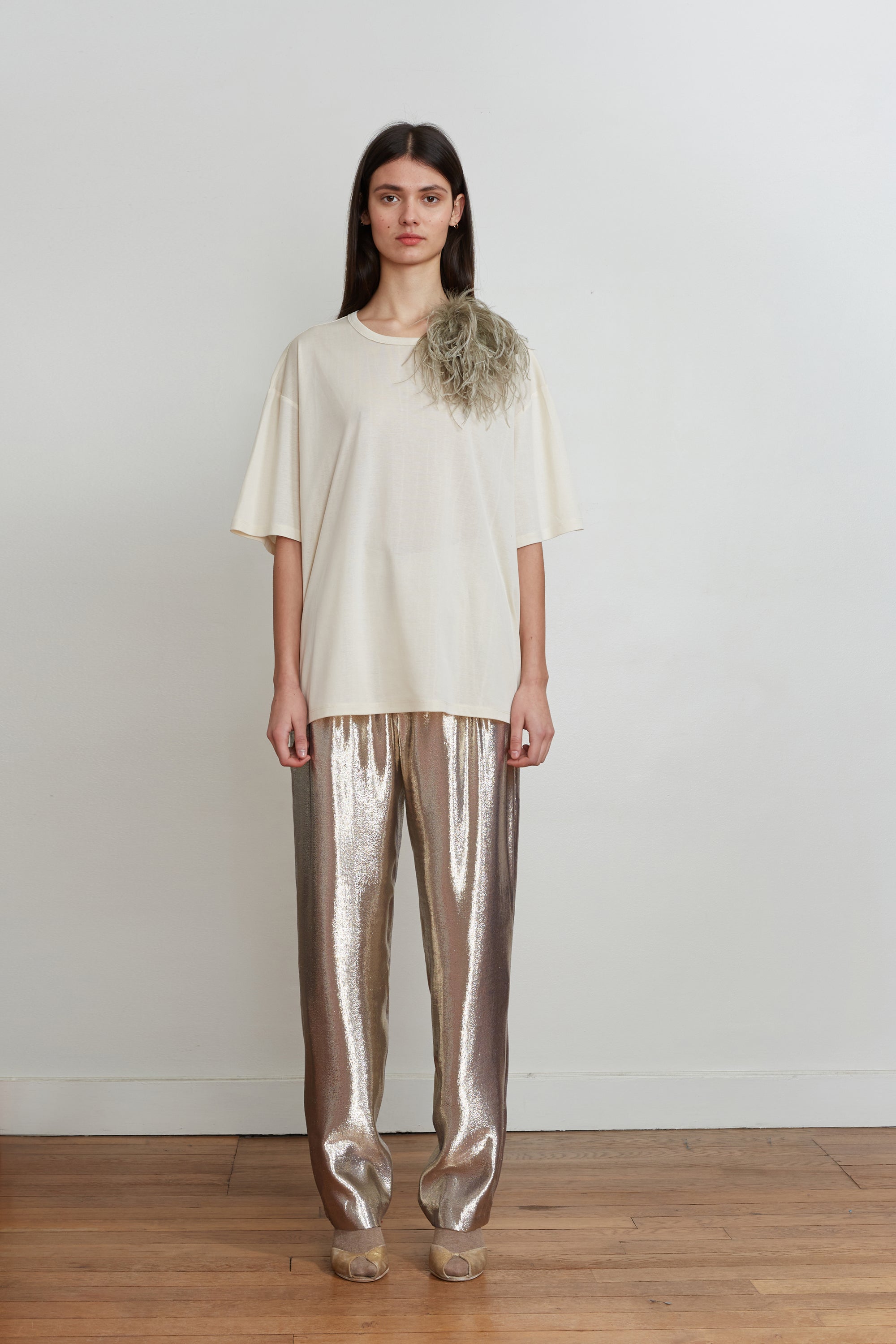 90% recycled silk 90% ostrich feathers