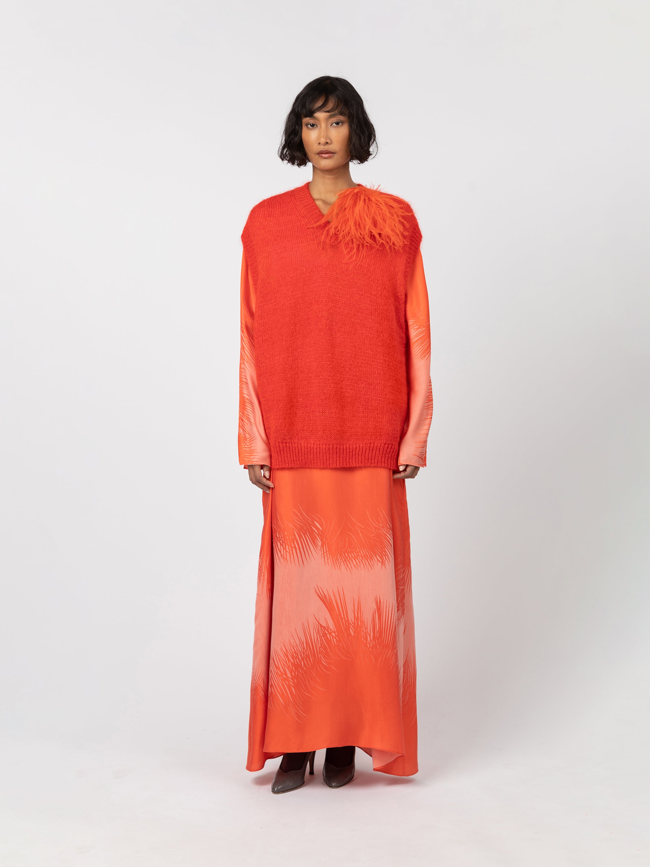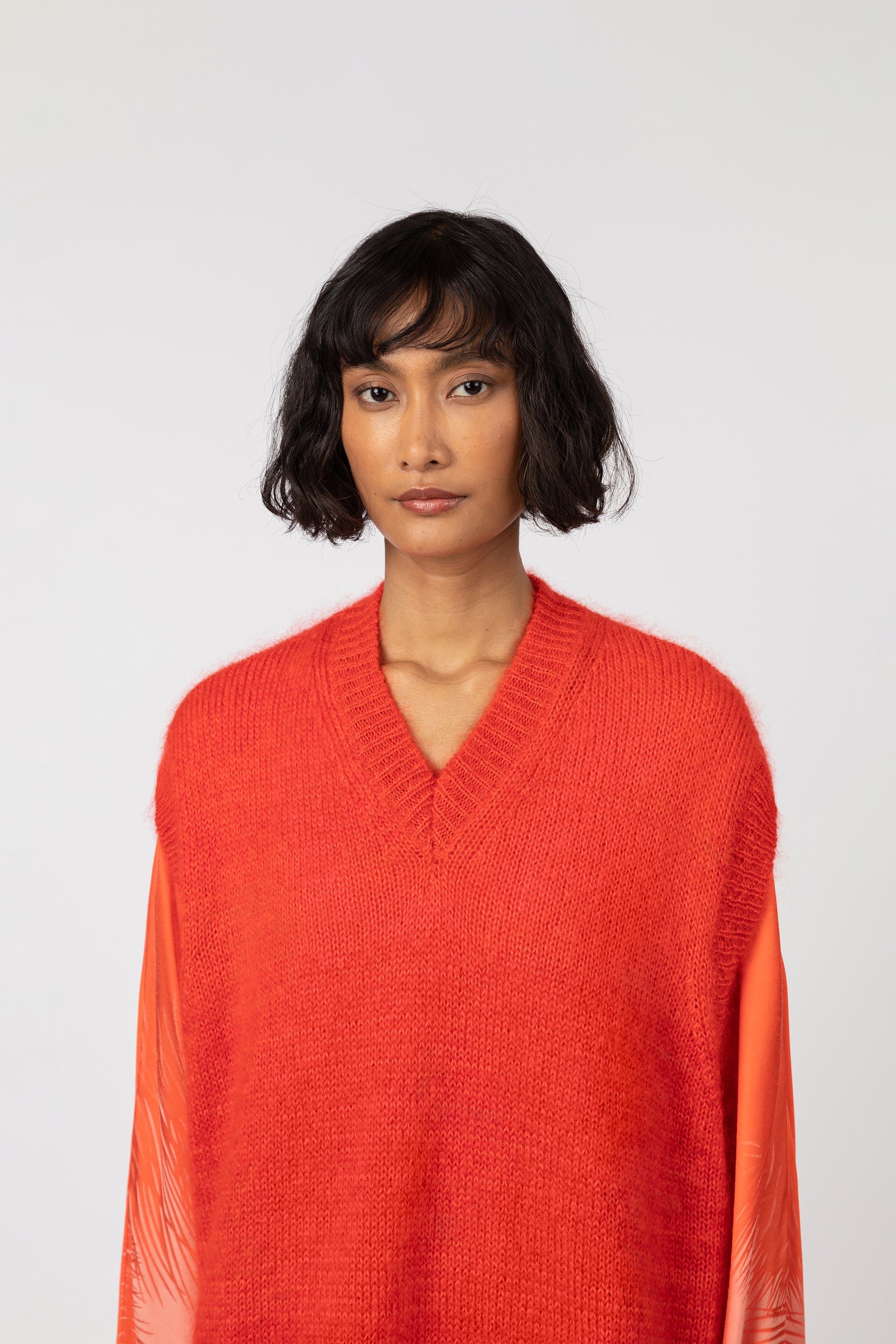 Mousseux et enveloppant, il présente une coupe droite et oversized, ainsi qu’un col en V.