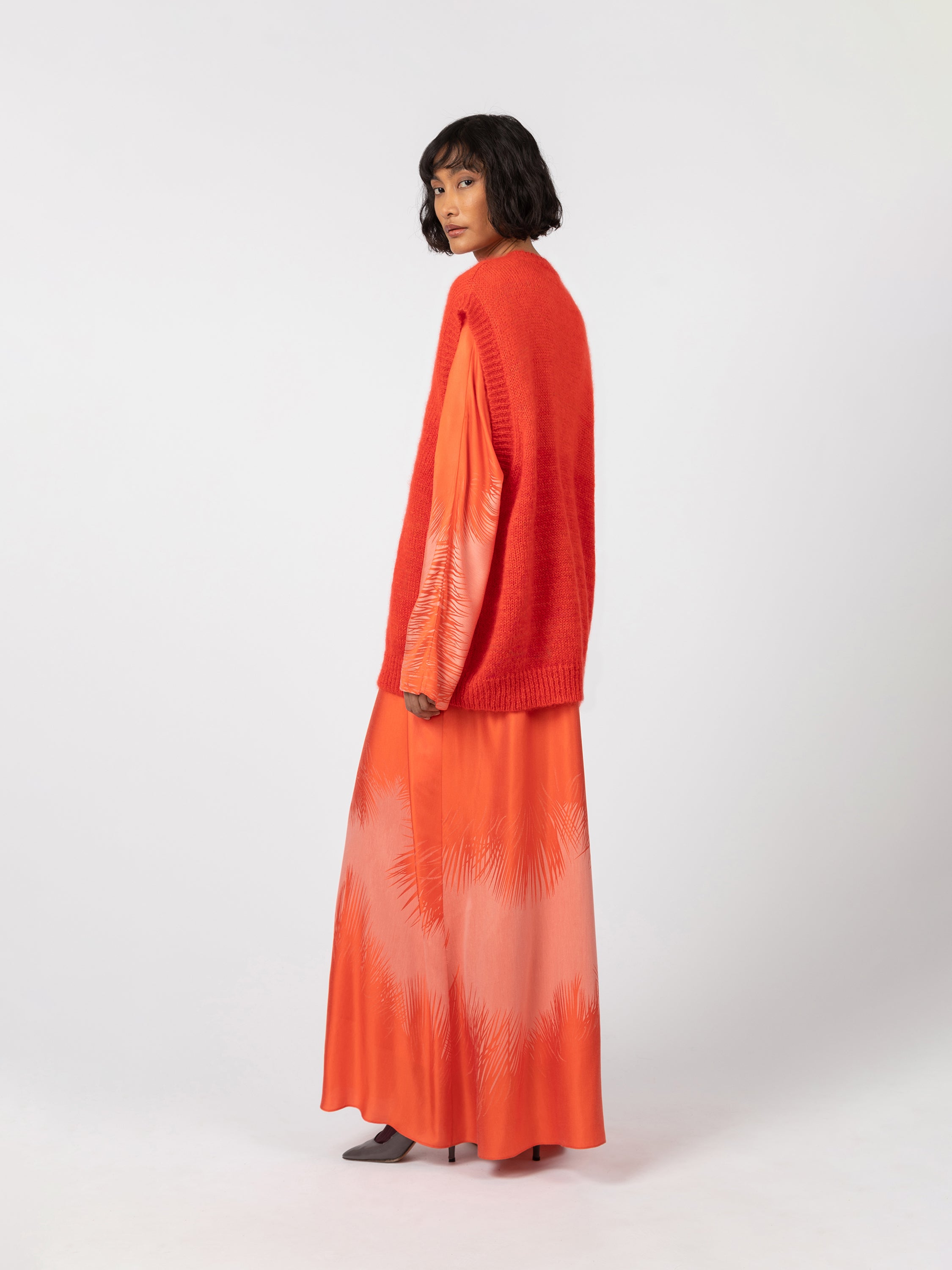 Le pull est porté avec la robe Tibre.