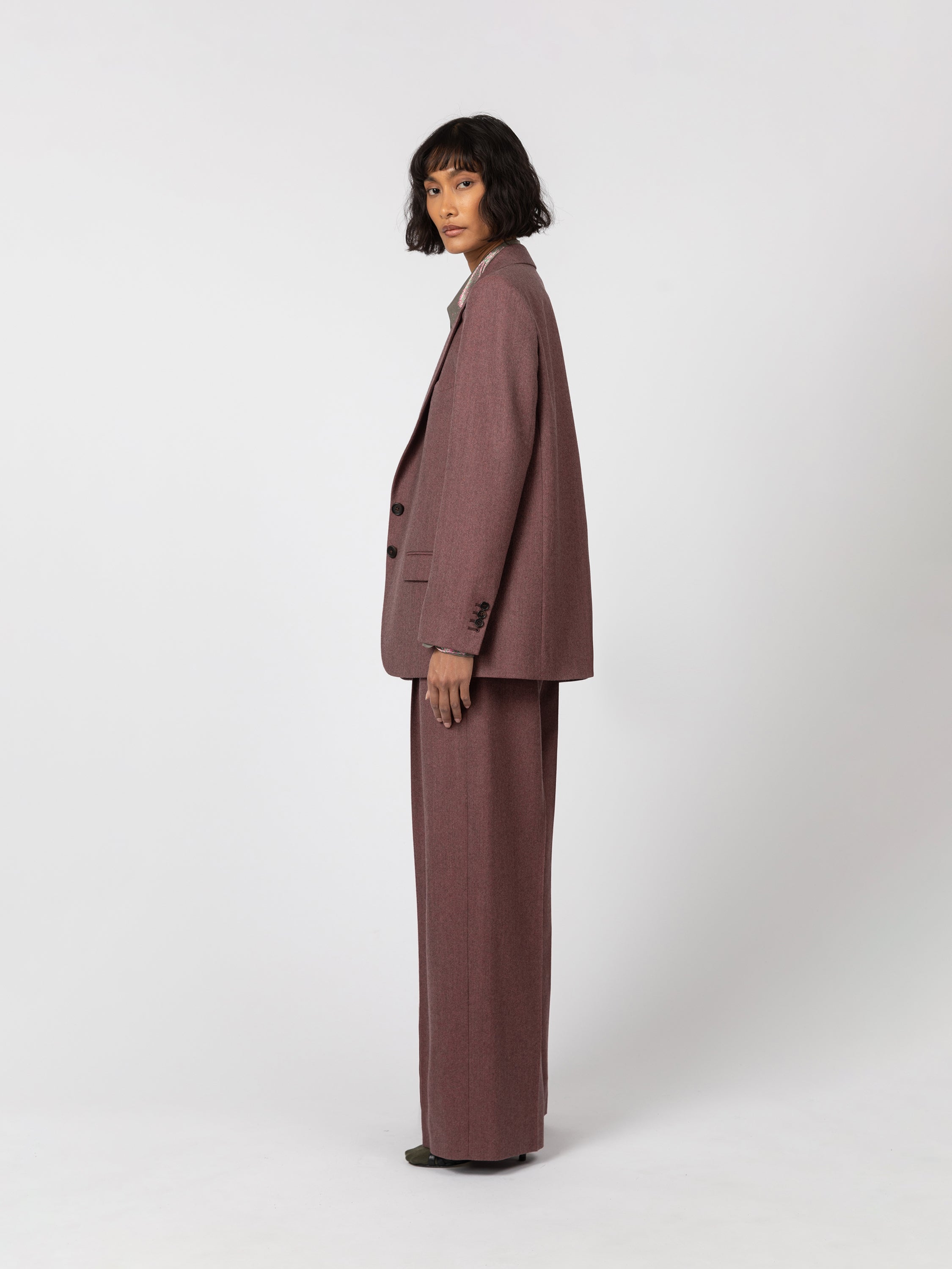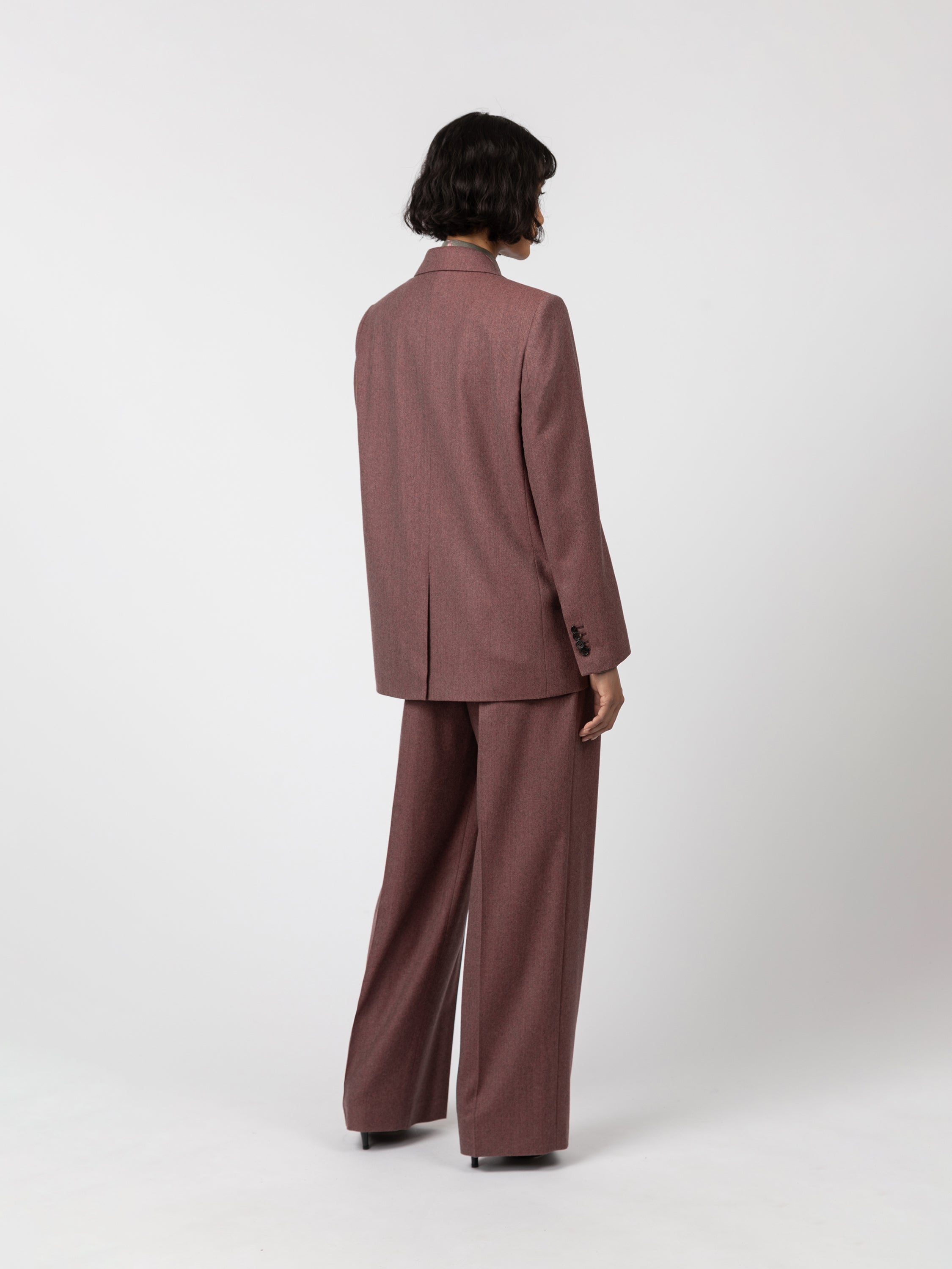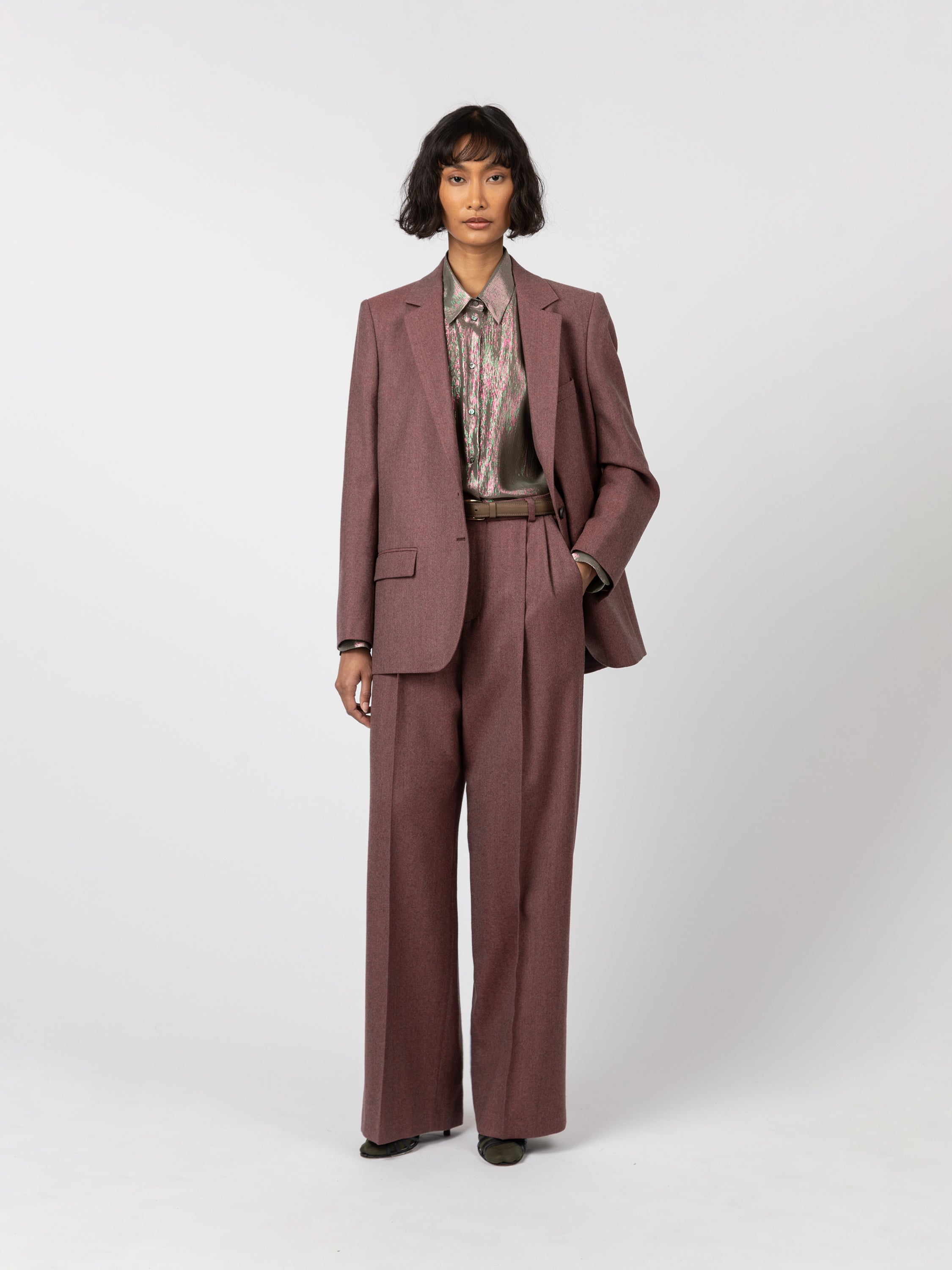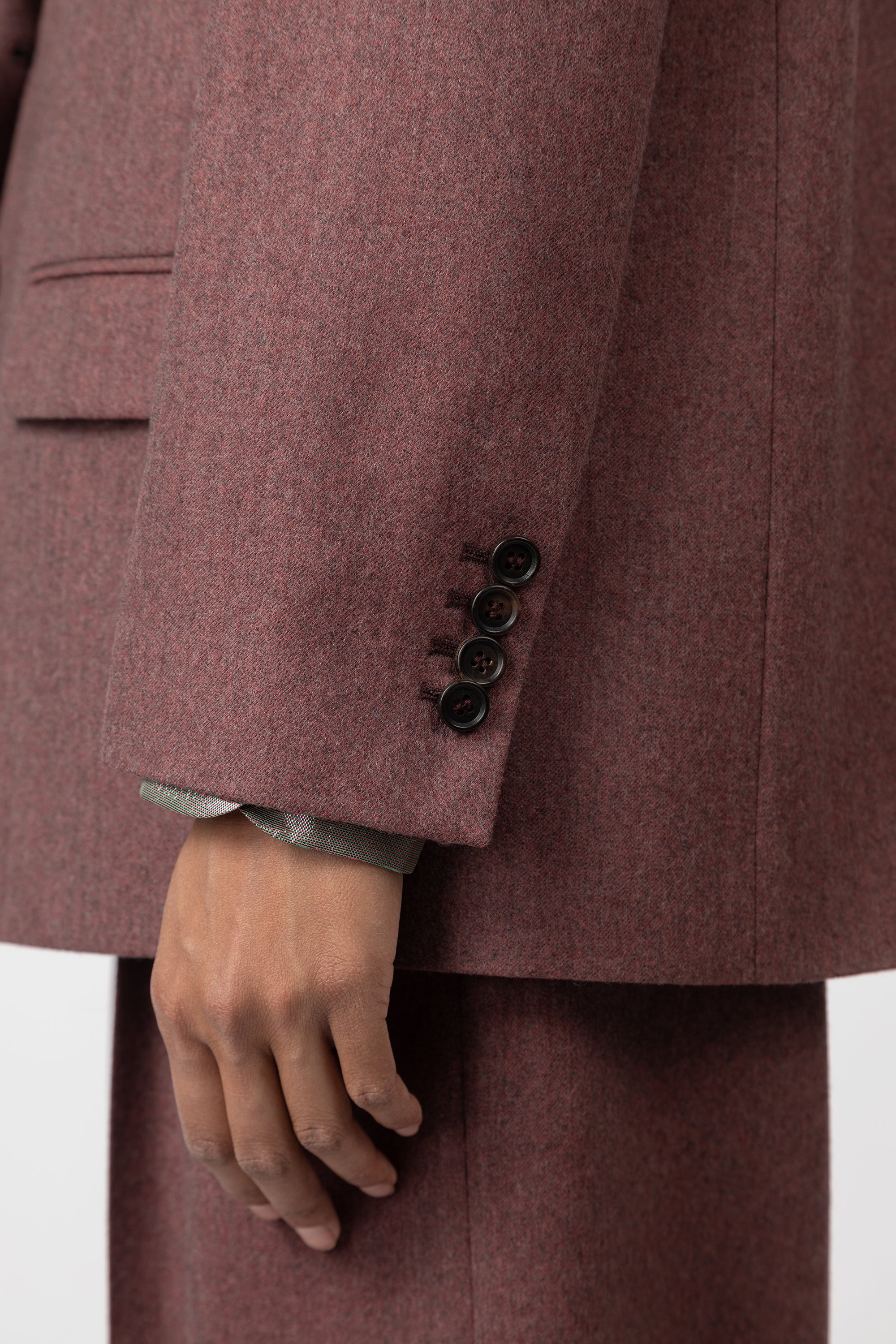 Cette veste est réalisée dans une lambswool souple et douce tissé dans le comté du Yorkshire en Angleterre. Elle présente une coupe droite et allongée. Elle emprunte des détails au vestiaire masculin comme le col à revers, les poches à rabat passepoilées, sa poche intérieure et sa poche poitrine à gauche. Elle se ferme devant et aux manches à l’aide de boutons en corne véritable. La veste est entièrement doublée.