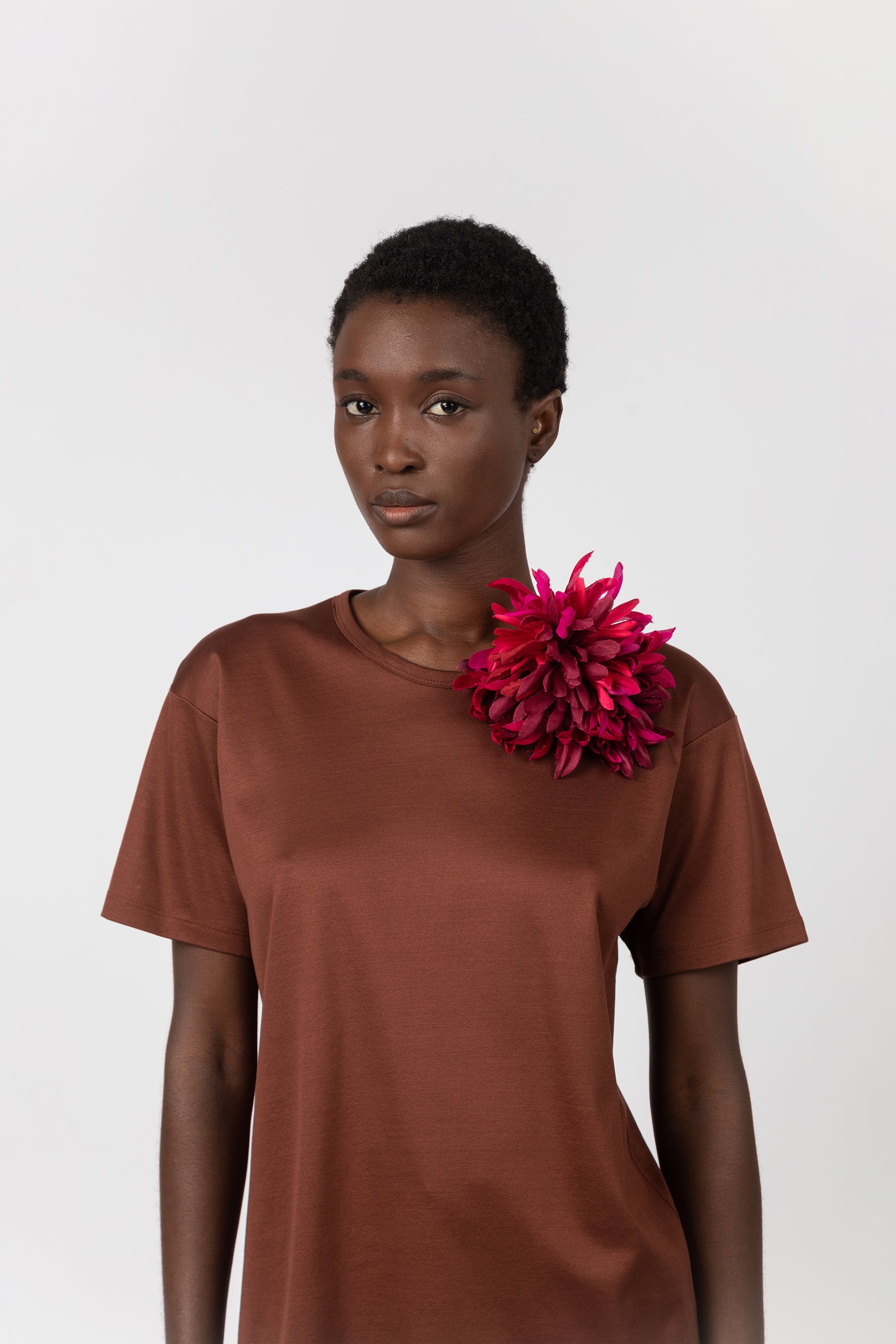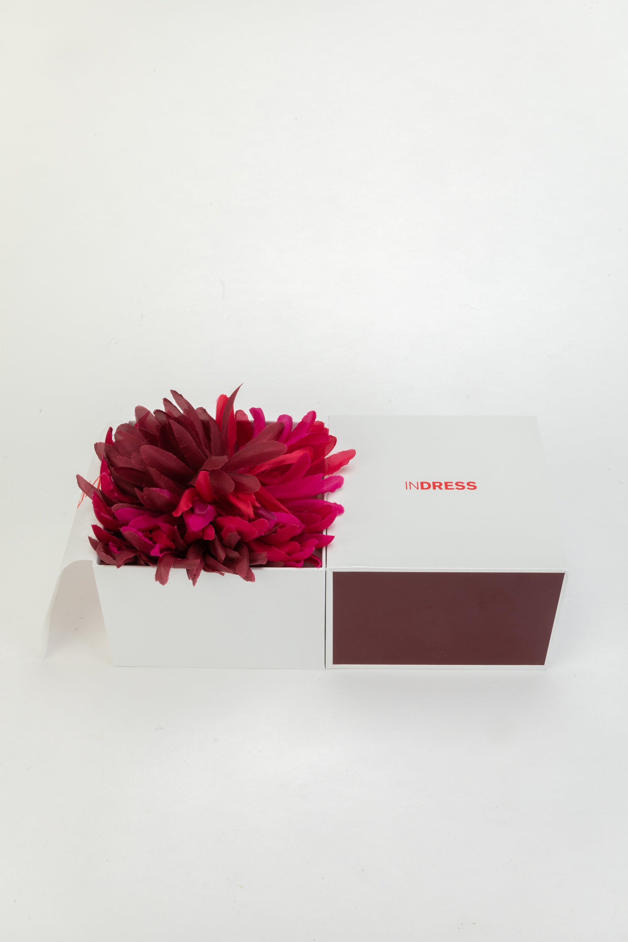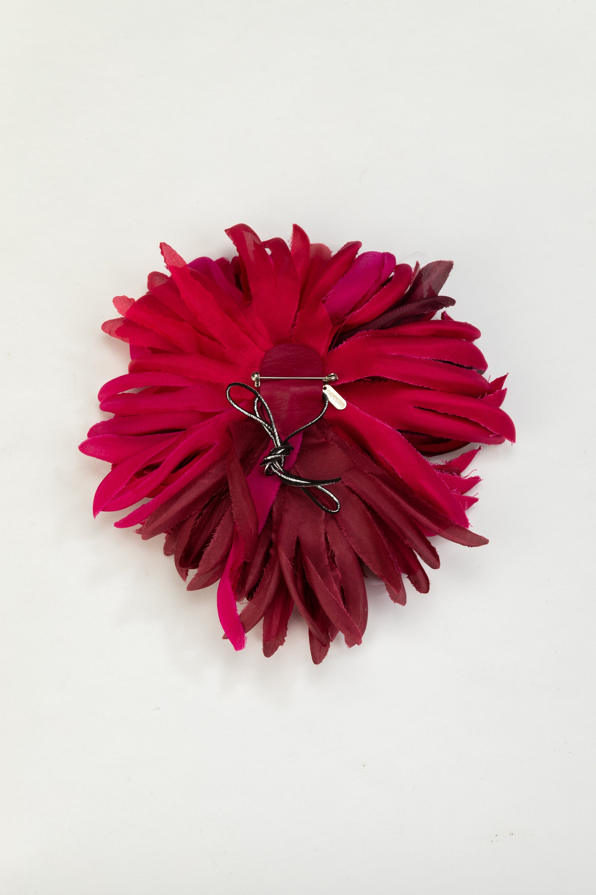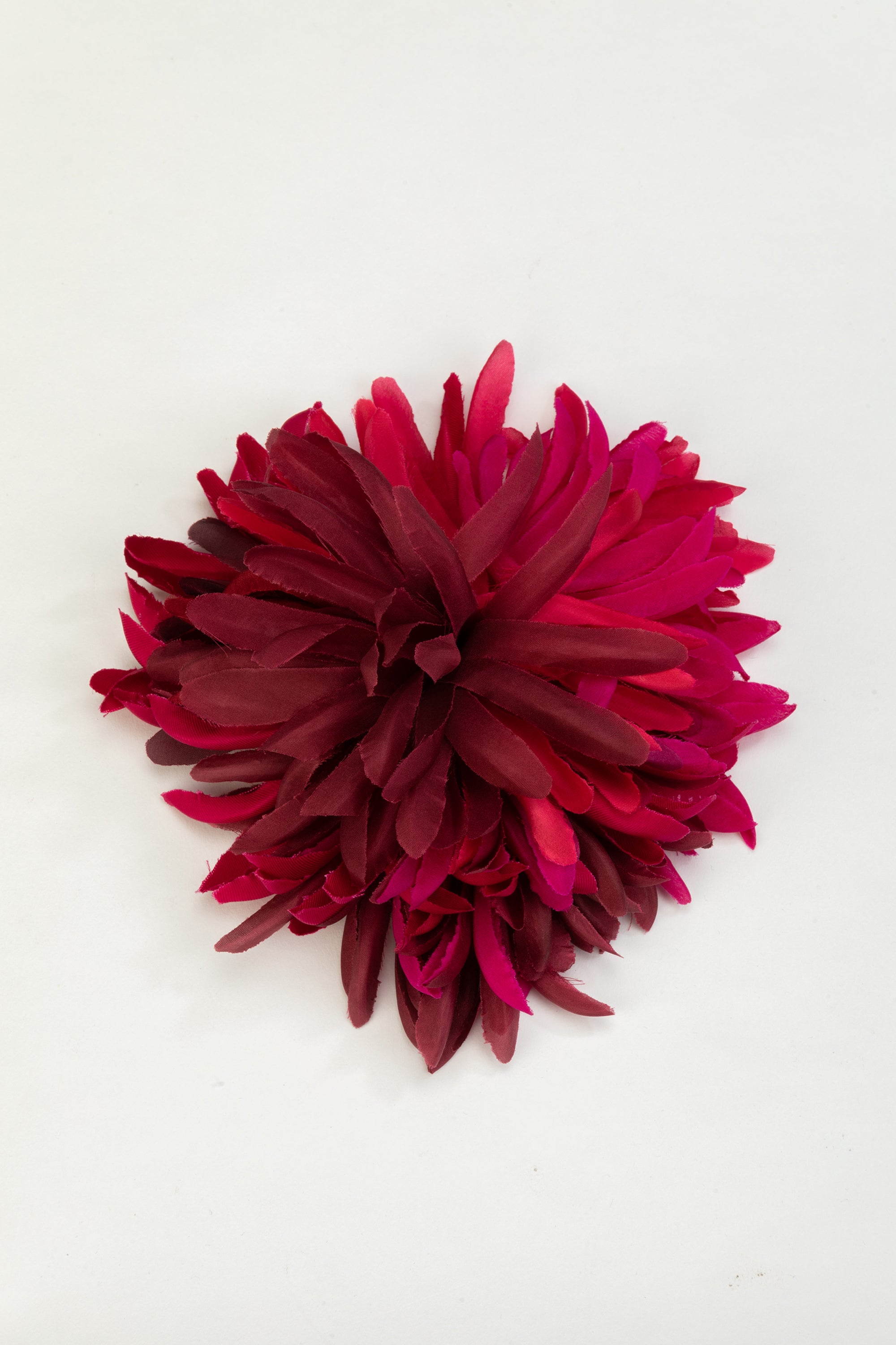 Nos broches en soie sont fabriquées à la main à Paris par l'un des derniers ateliers indépendants spécialisés dans le travail des fleurs. Elles sont réalisées à partir de chutes de soie issues de la production de nos collections. Chaque pétale est amidonné et découpé à l'aide d'un emporte-pièce pour obtenir sa forme creuse et arrondie. Grâce à son élastique, vous pourrez porter la broche dans vos cheveux ou à votre poignet. La couleur de chaque fleur est exclusive et spécialement conçue pour INDRESS. La broche ne résiste ni à la pluie, ni à l'humidité. Le gaufrage est éphémère. Les pétales s'assoupliront naturellement avec le temps.